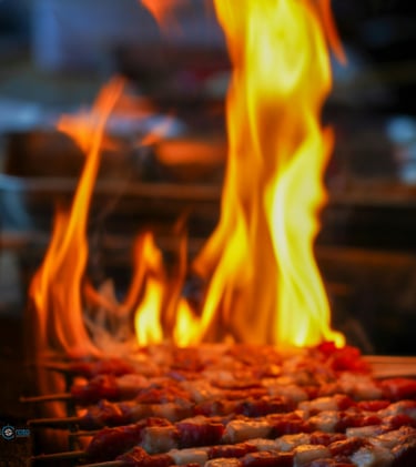 Le Cœur du Repas (La Pikkilia) : Le plat de la convivialité par excellence. Un grand et généreux plateau où les viandes sont grillées au feu de bois, fumées et parfumées, à partager au centre de la table.